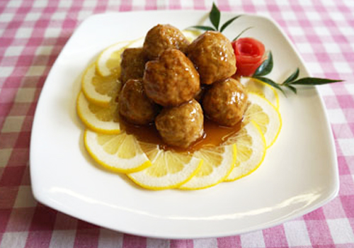 新潟県産・国産素材100%で仕上げた具だくさんの肉団子です。 (醤油味・甘酢味あんかけ仕様にも対応しております。)